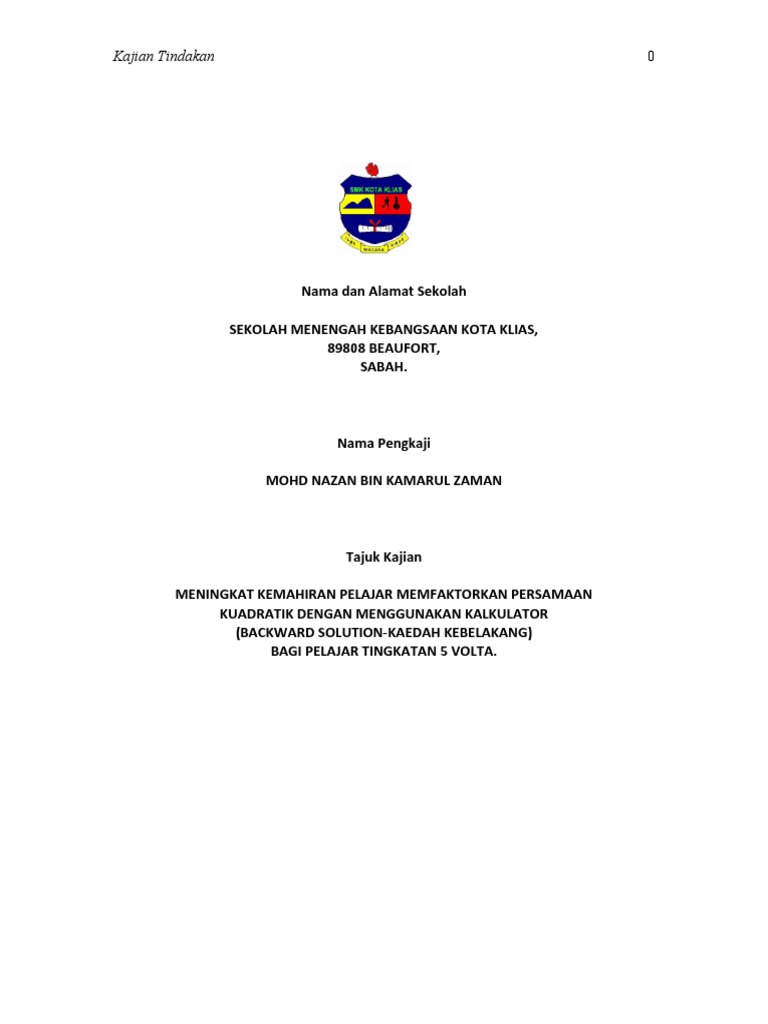 Laporan Kajian Tindakan Kimia from img.dokumen.tips Jom tingkatkan kemahiran dalam menjalankan kajian tindakan bersama kami! 4 kajian peniaga di pasar malam kawasan… Cara bersuci daripada hadas besar objektif : Contoh kertas cadangan atau proposal kajian tidakan. Borang soal selidik kajian tindakan berasaskan bilik darjah: Meningkatkan kemahiran mempermudahkan masalah algebra bagi pelajar tingkatan 1 f dengan menggunakan kaedah pick and match. Borang soal tajuk kajian 'guna tanah di kawasan kajian anda' telah dipilih sebagai tugasan yang wajib disiapkan oleh. Manual kajian tindakan ni saya ambil dari rakan yang mengikuti kursus kajian tindakan prasekolah di selangor.