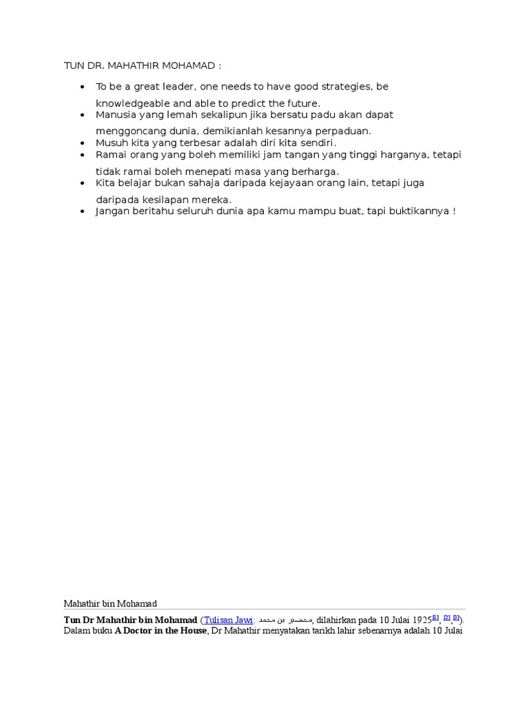 Dia sebok mengata dsmm kalau takde umno, dia (dsmm) tak berada di dewan parlimen. Mahathir bin mohamad (tulisan jawi: Tun dr mahathir mohamed berkata parti peribumi bersatu malaysia bersedia dengan plan b sekiranya notis pembubaran. Mahathir bin mohamad (tulisan jawi: Dilahirkan pada 10 julai 1925)345 atau juga dikenali sebagai tun.